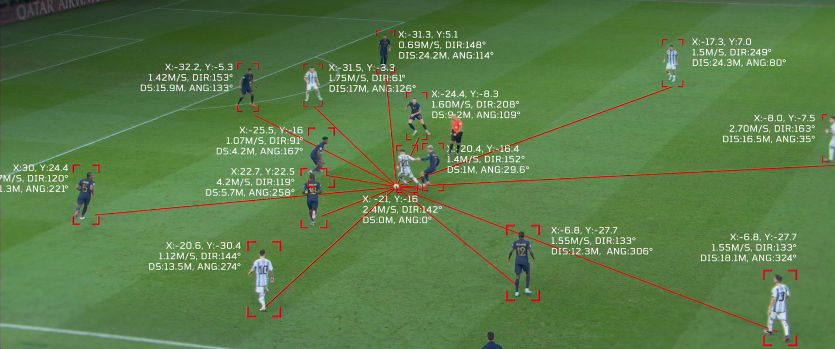 Our AI synchronize all contextual data, the speed, vision, head angle and positioning of all 22 players into one unified metric. Move beyond isolated stats to see the specific tactical logic behind every on-pitch decision.