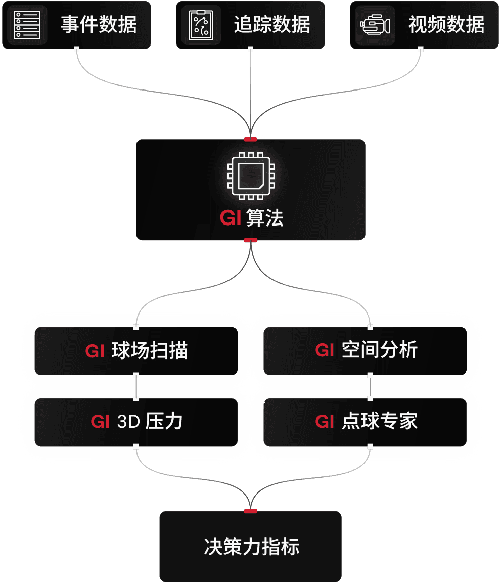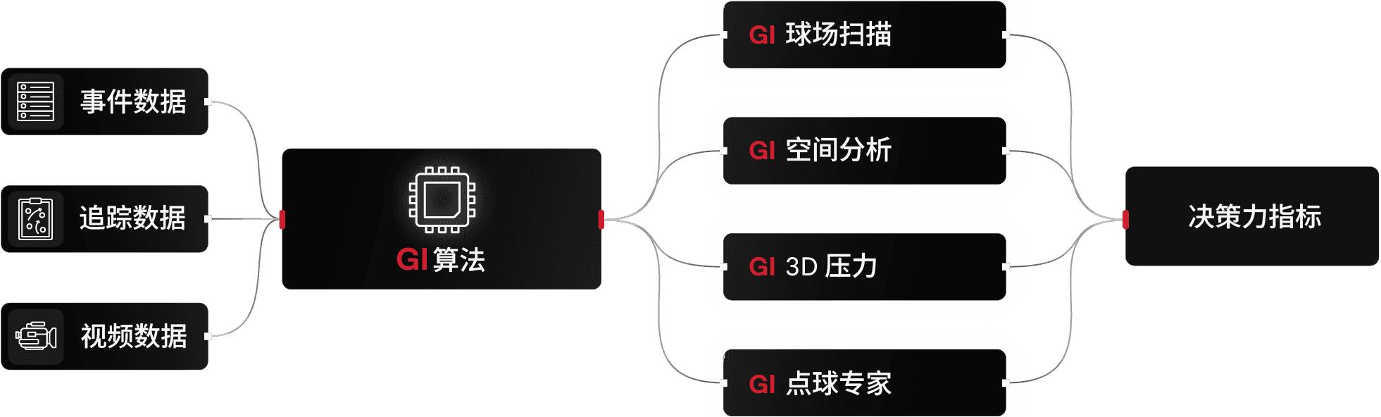 GI 球场扫描将场上意识转化为评分。不仅看到传球本身的决策,更看到球员在接球、转身或出球前观察到了什么。